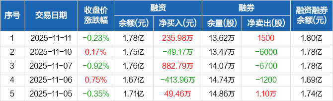 中国汽研:融资净买入235.98万元,融资余额1.78亿元(11-11)