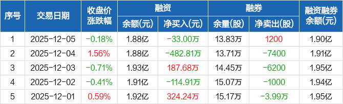中国汽研:融资净偿还33万元,融资余额1.88亿元(12-05)