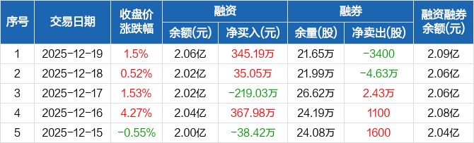 中国汽研:融资余额2.06亿元,创近一年新高(12-19)