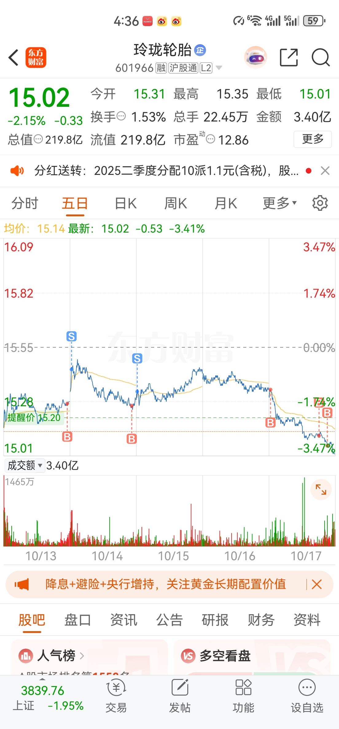 $玲珑轮胎(SH601966)$ 今天连续加仓,成本继续下行,虽然没有在最低点,但是价格还是非常满意的,这个价格能买到,也是非常不错的,长期持有,收益率应该还是不错的