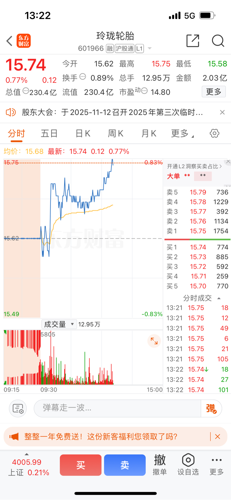 $玲珑轮胎(SH601966)$ 今天是个好日子,回本了