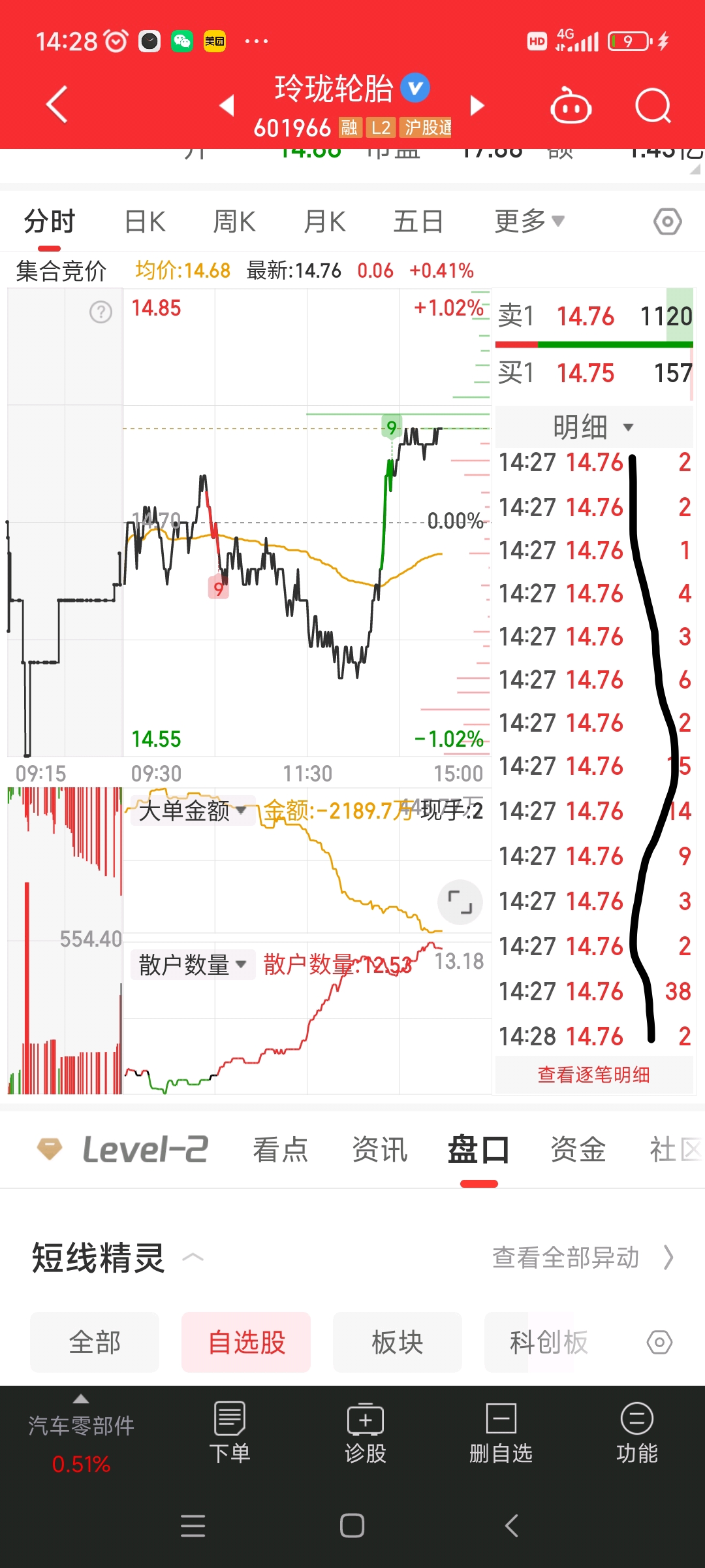 $玲珑轮胎(SH601966)$ 买单都是一手两手