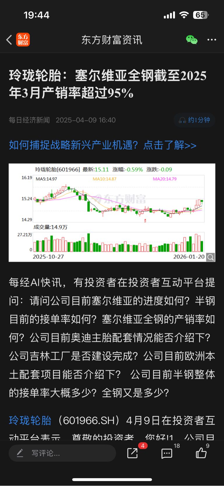 $玲珑轮胎(SH601966)$ 看看7个月前董秘的回复