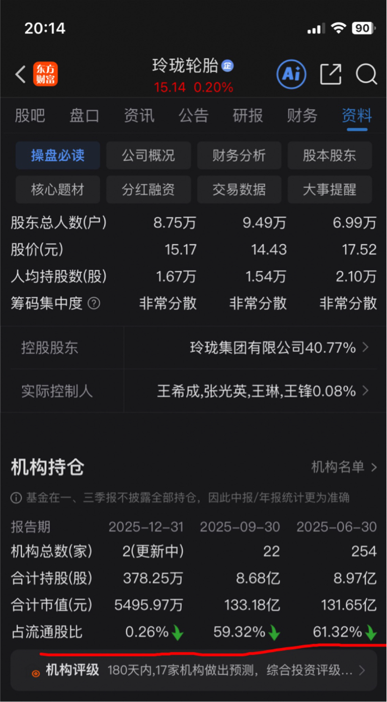 $玲珑轮胎(SH601966)$ 难怪一直不涨!全是散户在这里自嗨