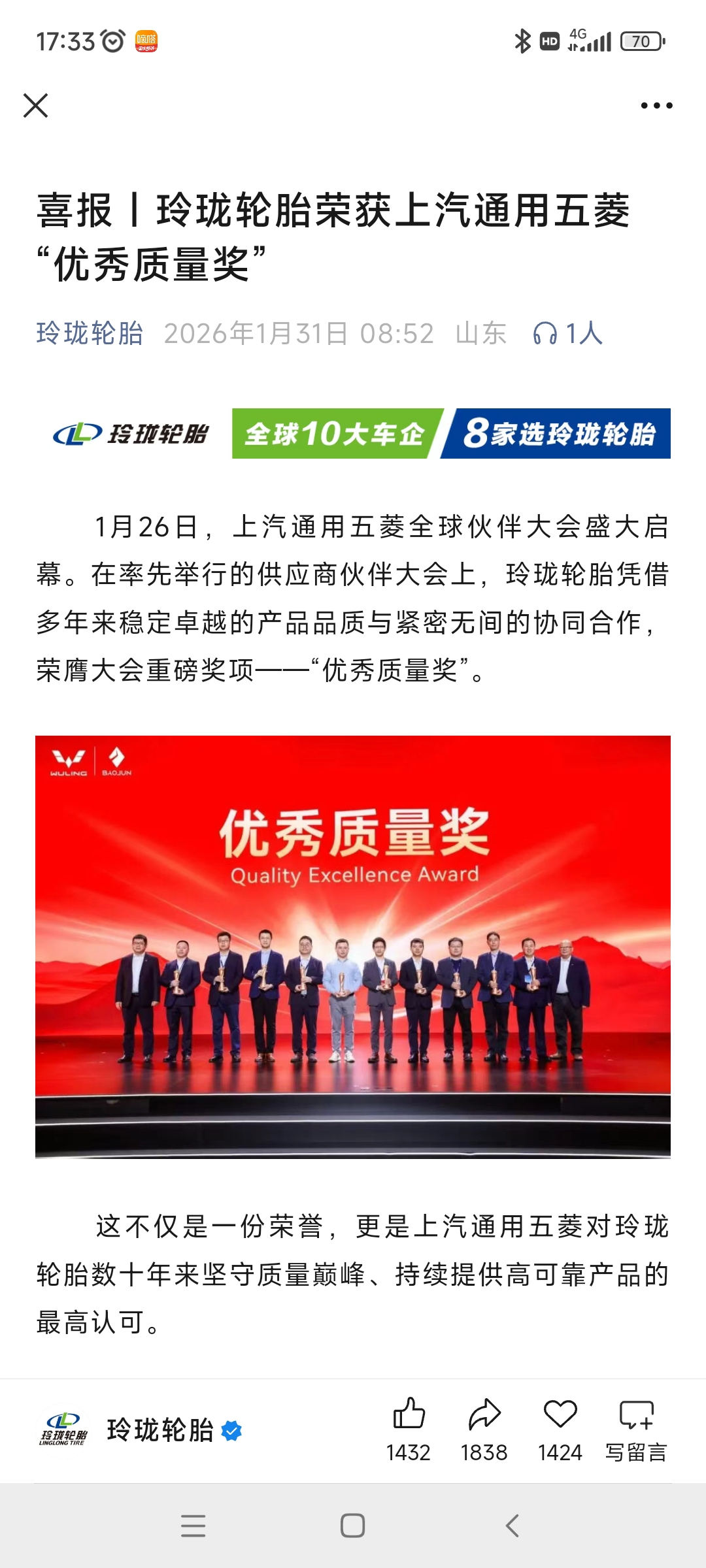 $玲珑轮胎(SH601966)$ 周一跌六分钱以示表达