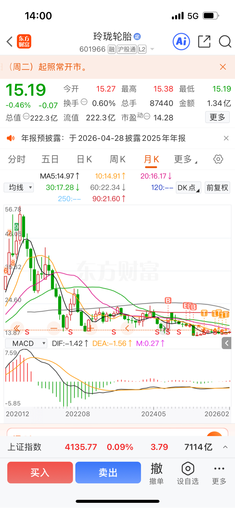$玲珑轮胎(SH601966)$ 拿了这么久,还没回本