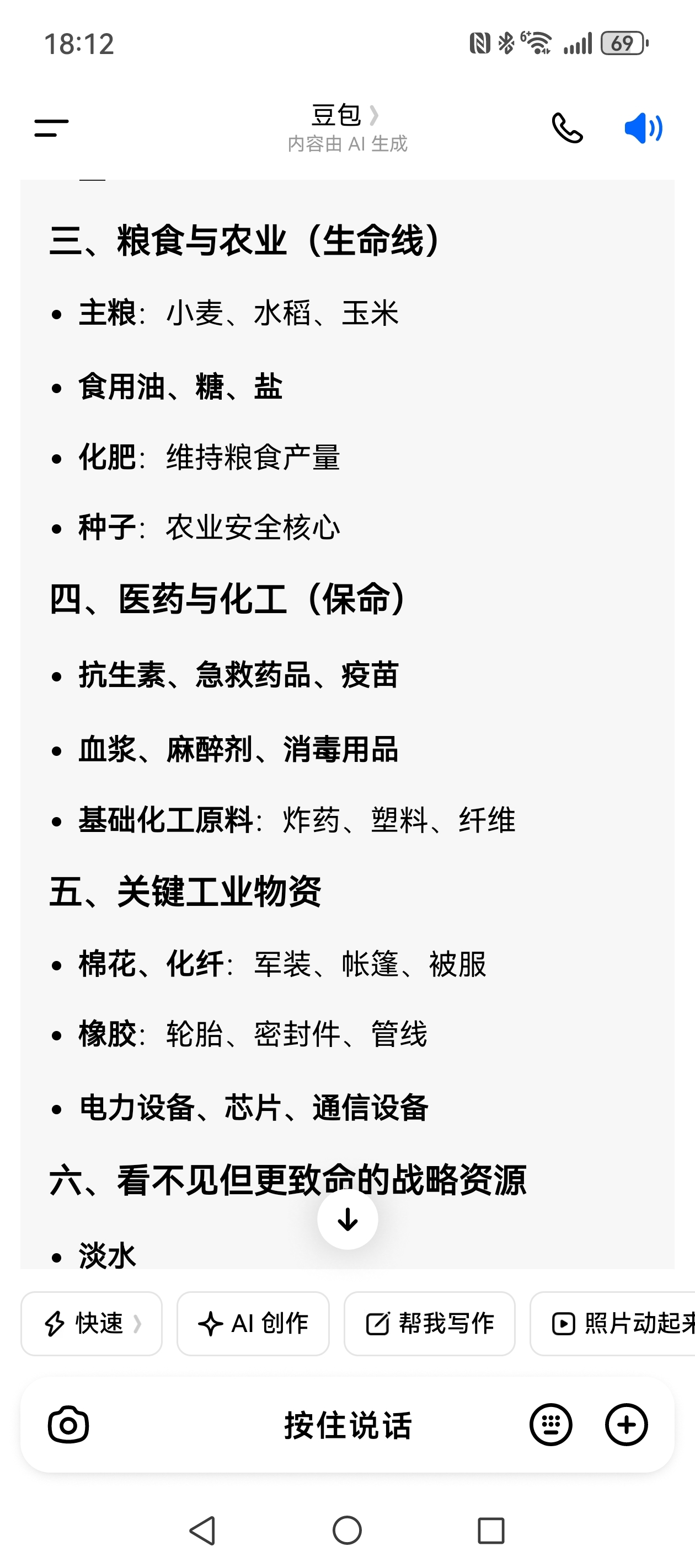 豆包告诉你战争来临时的战略物资有哪些: