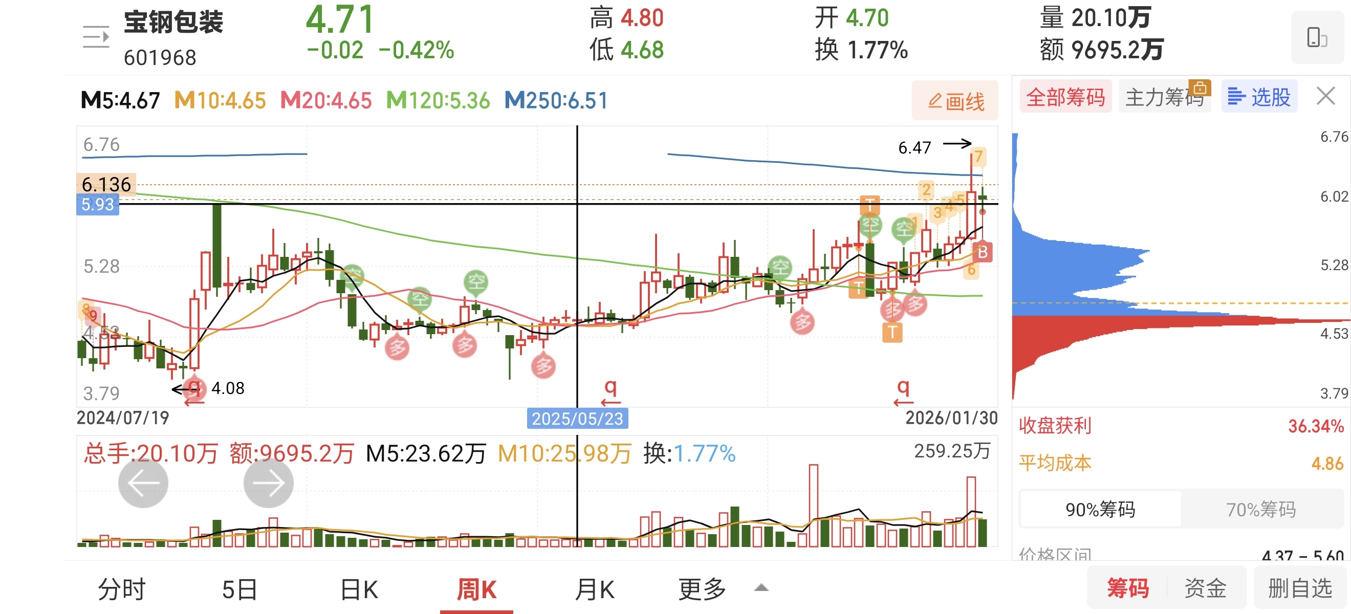 $宝钢包装(SH601968)$ 周线级别的突破回踩