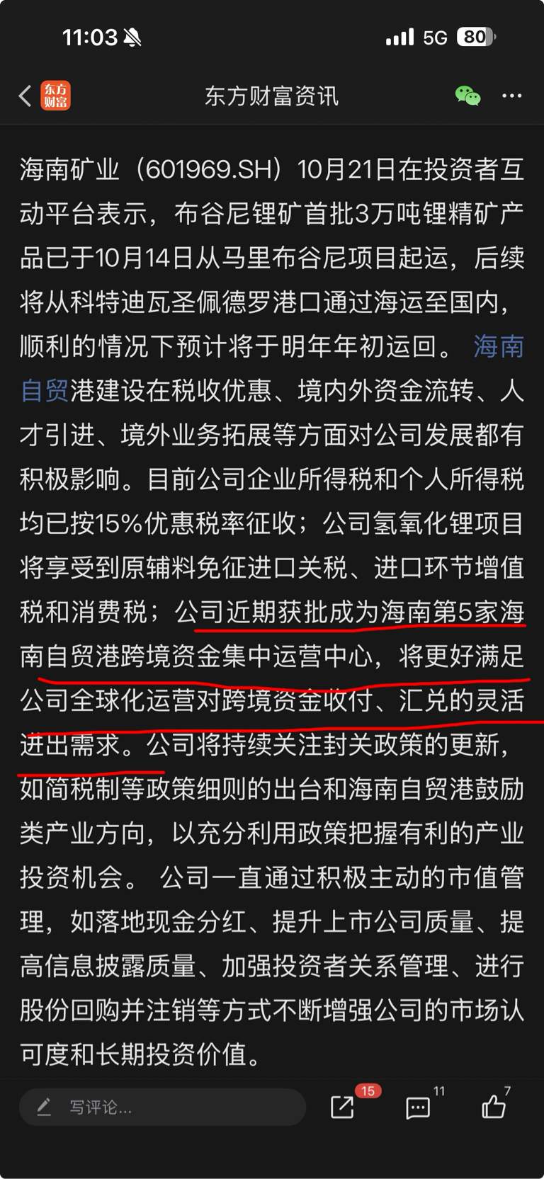 $海南矿业(SH601969)$ 海南自贸区第5家运营牌照