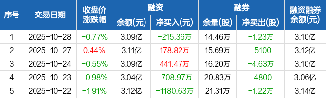 海南矿业:融资净偿还215.36万元,融资余额3.09亿元(10-28)