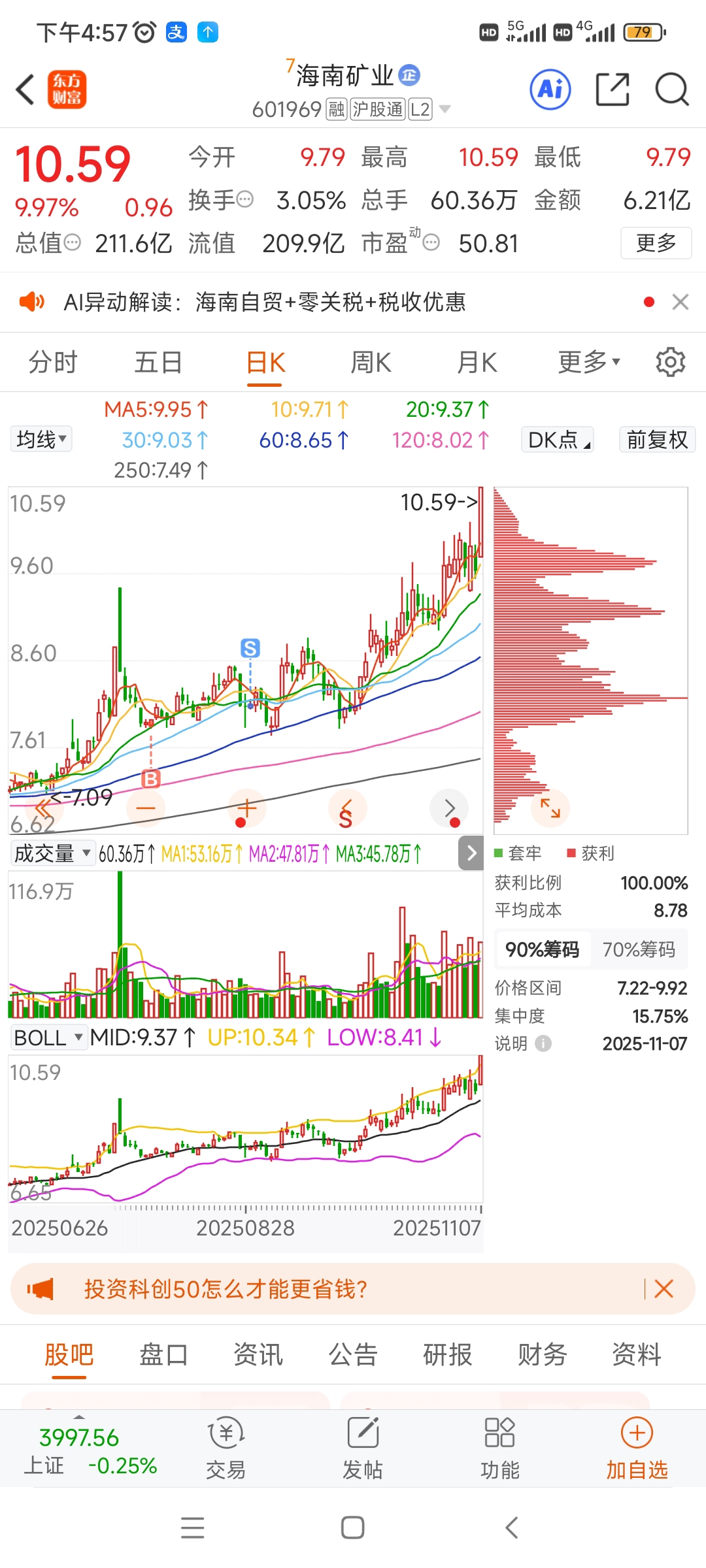 $海南矿业(SH601969)$ 其实也不是卖飞,只是看到出掉后还震荡下跌,误判只是个紧跟板块波动的拉基,没走出独立行情的意思,就没有再考虑