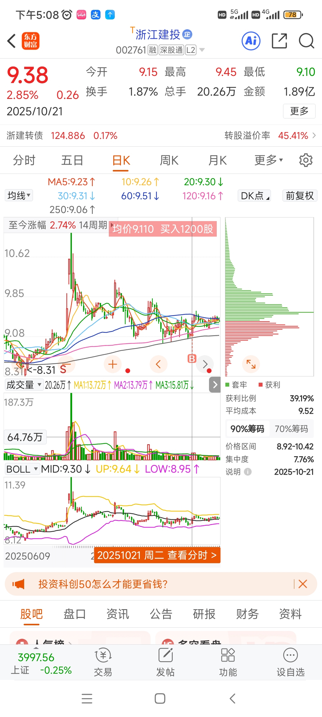 (当天凌晨选票时才想起来建投,一看好充分的整理位置,就挂了911上车了
