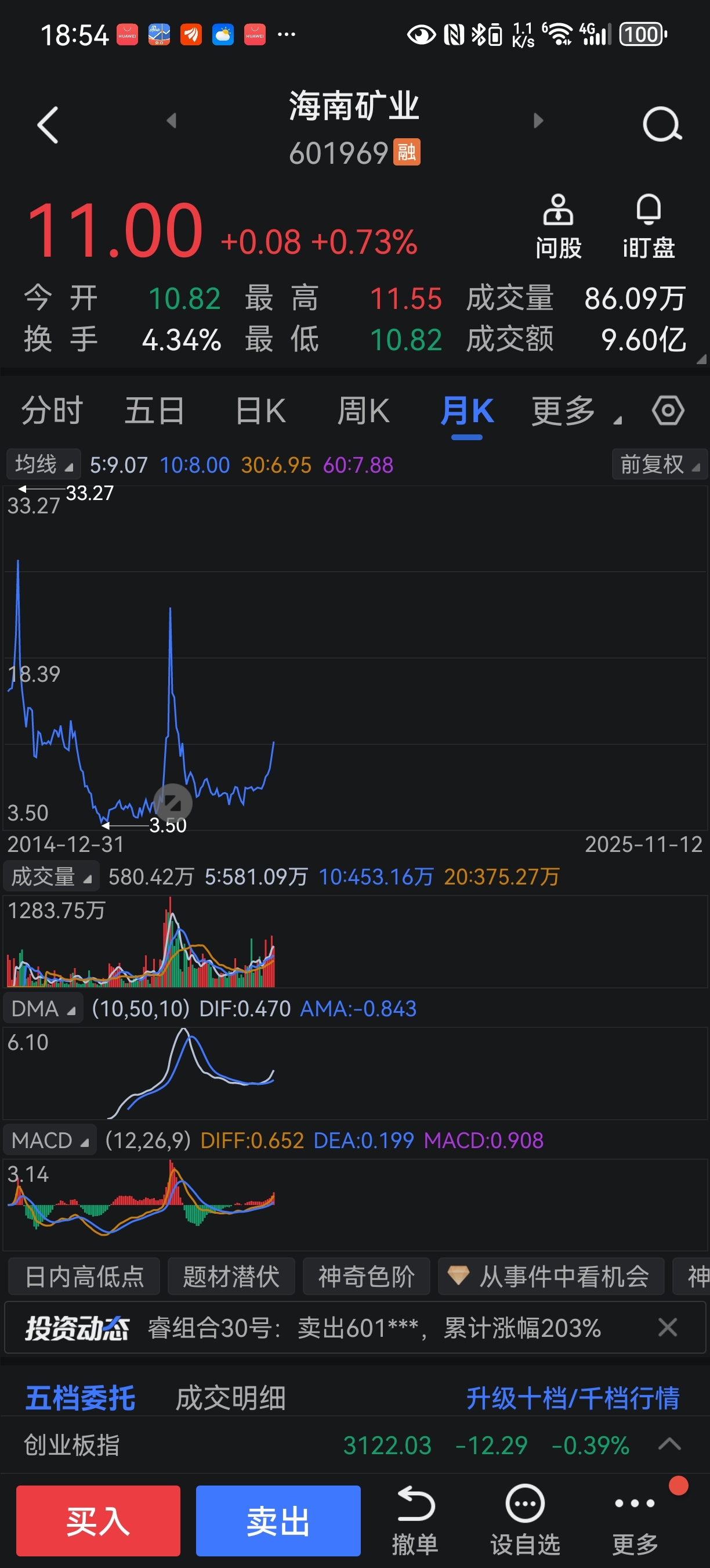 $海南矿业(SH601969)$ 公司将回购价格从10.01元,大幅上调至14.26元是大利好,再叠加海南封关12月18日的超级利好临近,都暗示股价将有一波大幅上涨来临,也许主升浪要来了,从历史底部起飞,建议朋友们以持有为主,少做T,以免丢失筹码。
