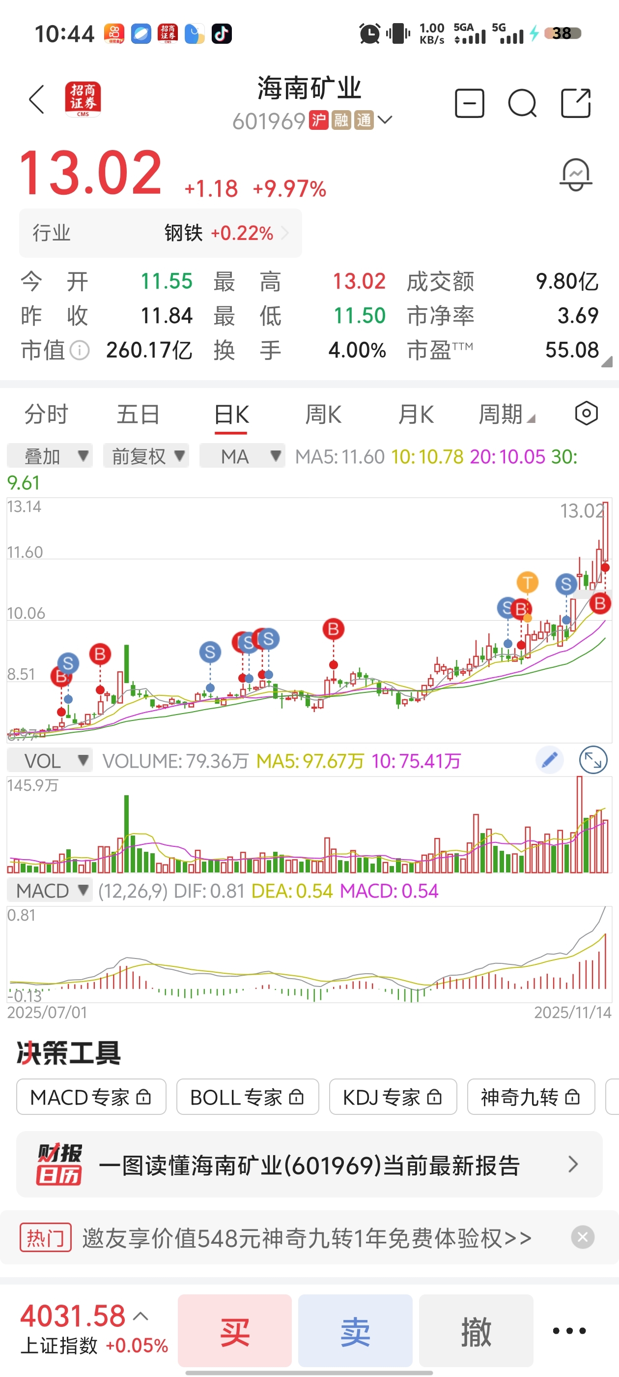 $海南矿业(SH601969)$ 原本7.1的本,把我的本洗着只挣了20%,要死,原本拿了几个月快翻倍的,哭死我了