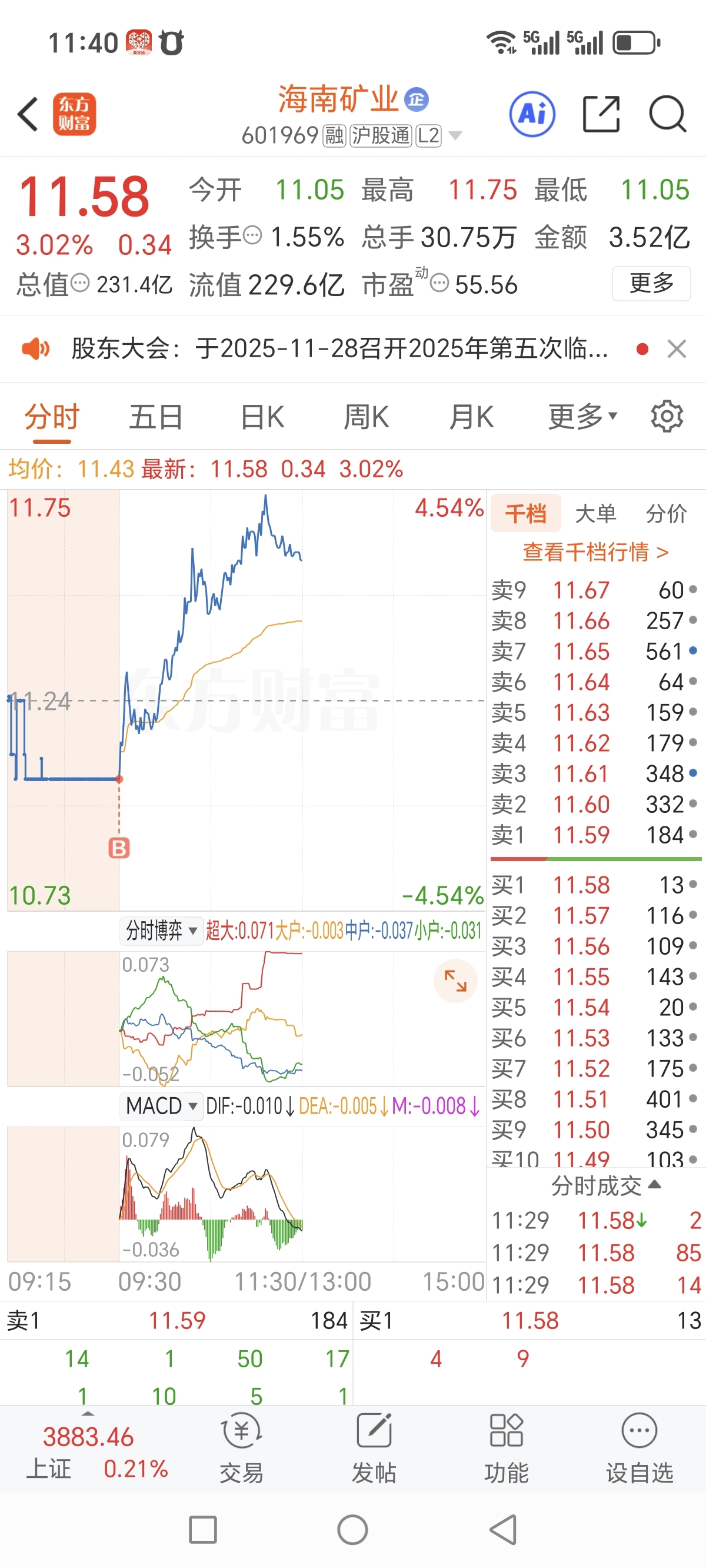 $海南矿业(SH601969)$ 小散今天没有追的,礼拜一肯定低开高走