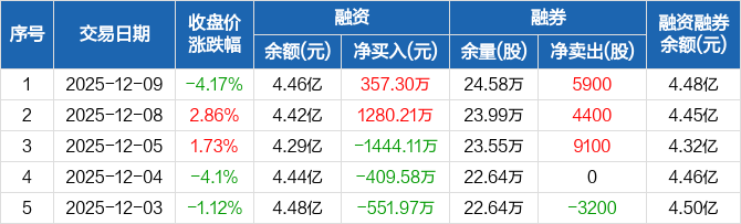 海南矿业:融资净买入357.3万元,融资余额4.46亿元(12-09)