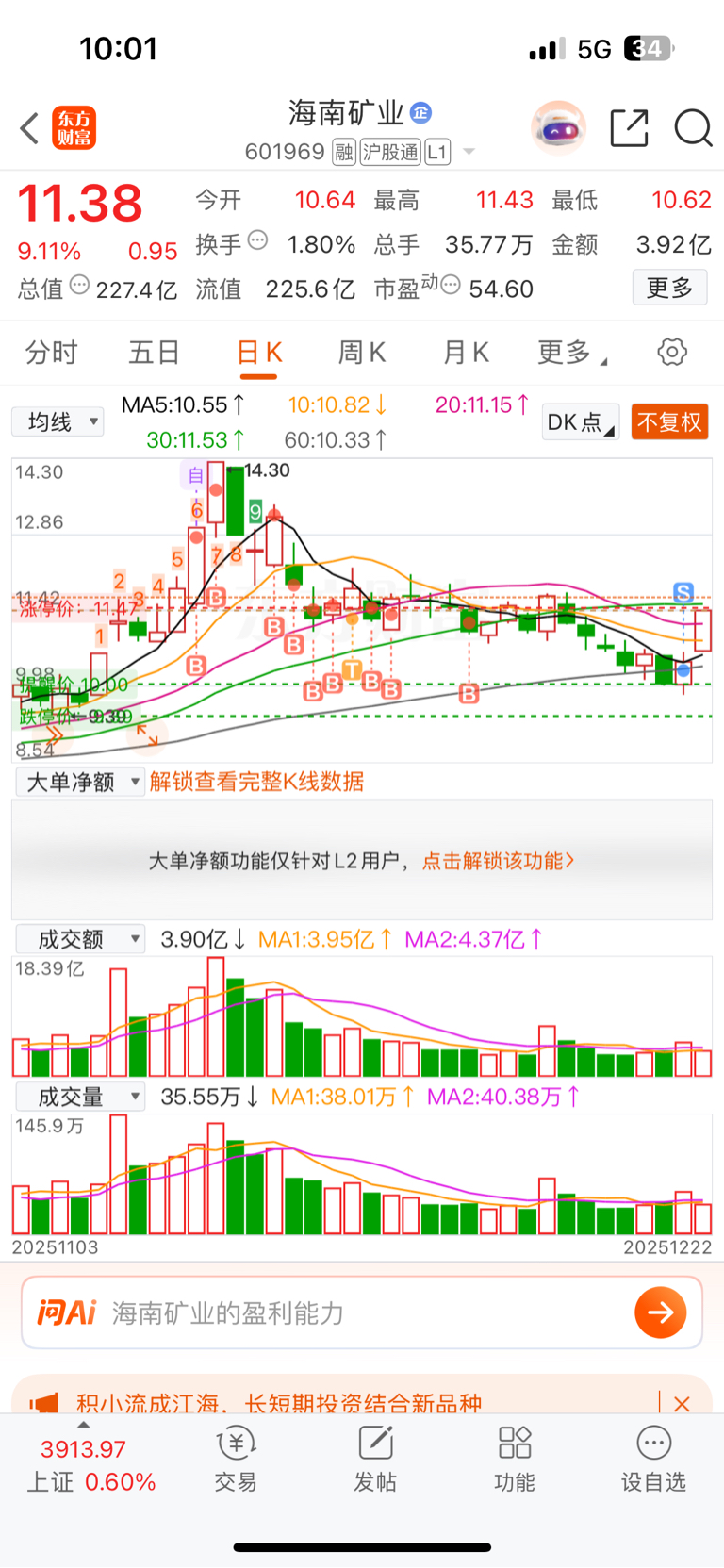 $海南矿业(SH601969)$ 我不卖,你不拉,你就跟我那一百股有仇