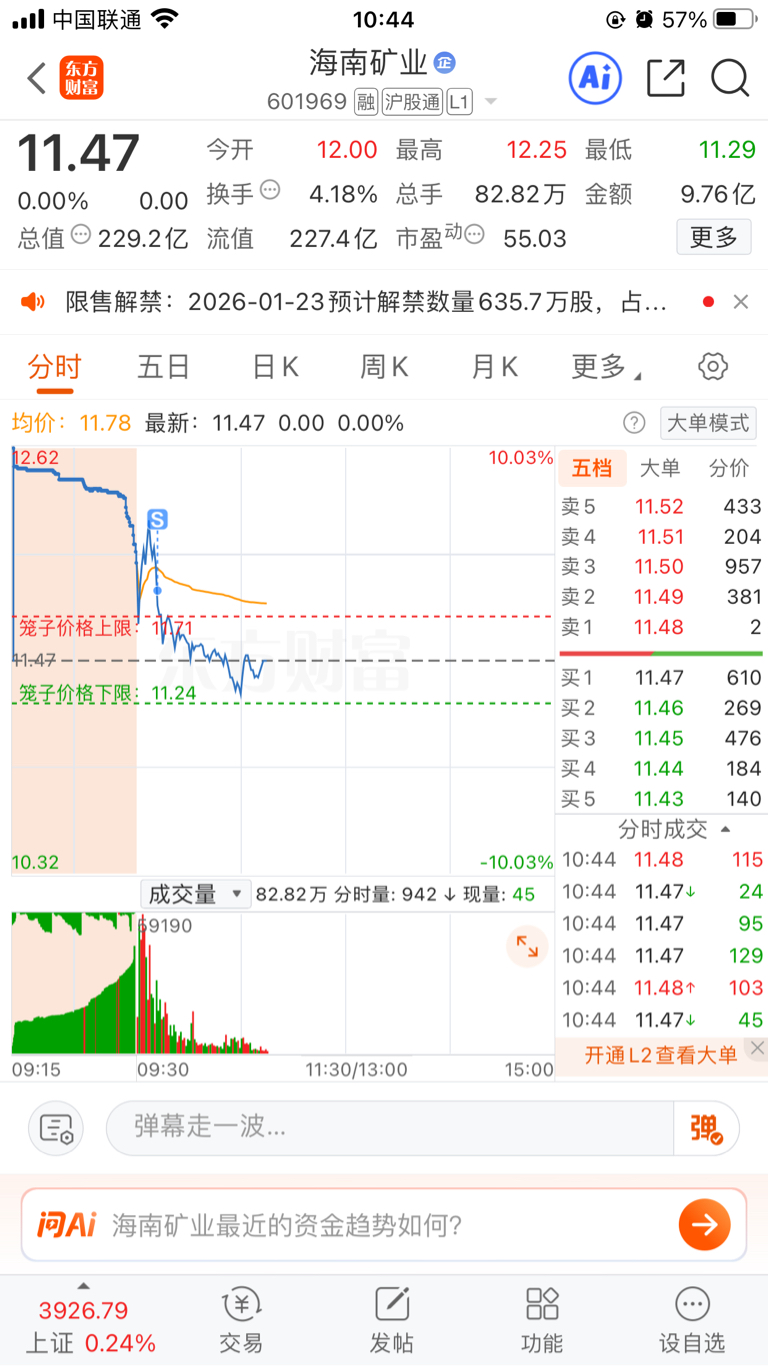 $海南矿业(SH601969)$ 幸亏11.85跑了