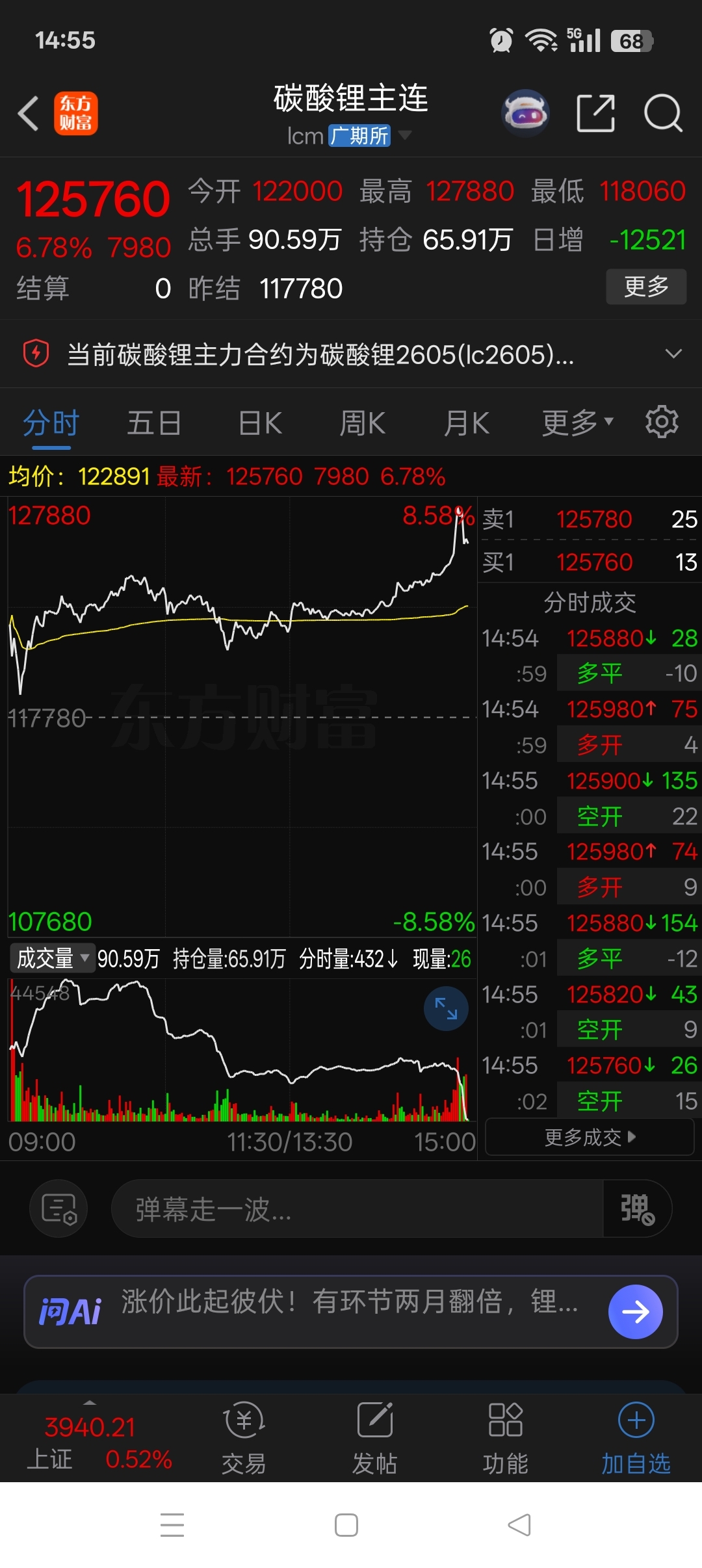 $海南矿业(SH601969)$ 碳酸锂涨疯了