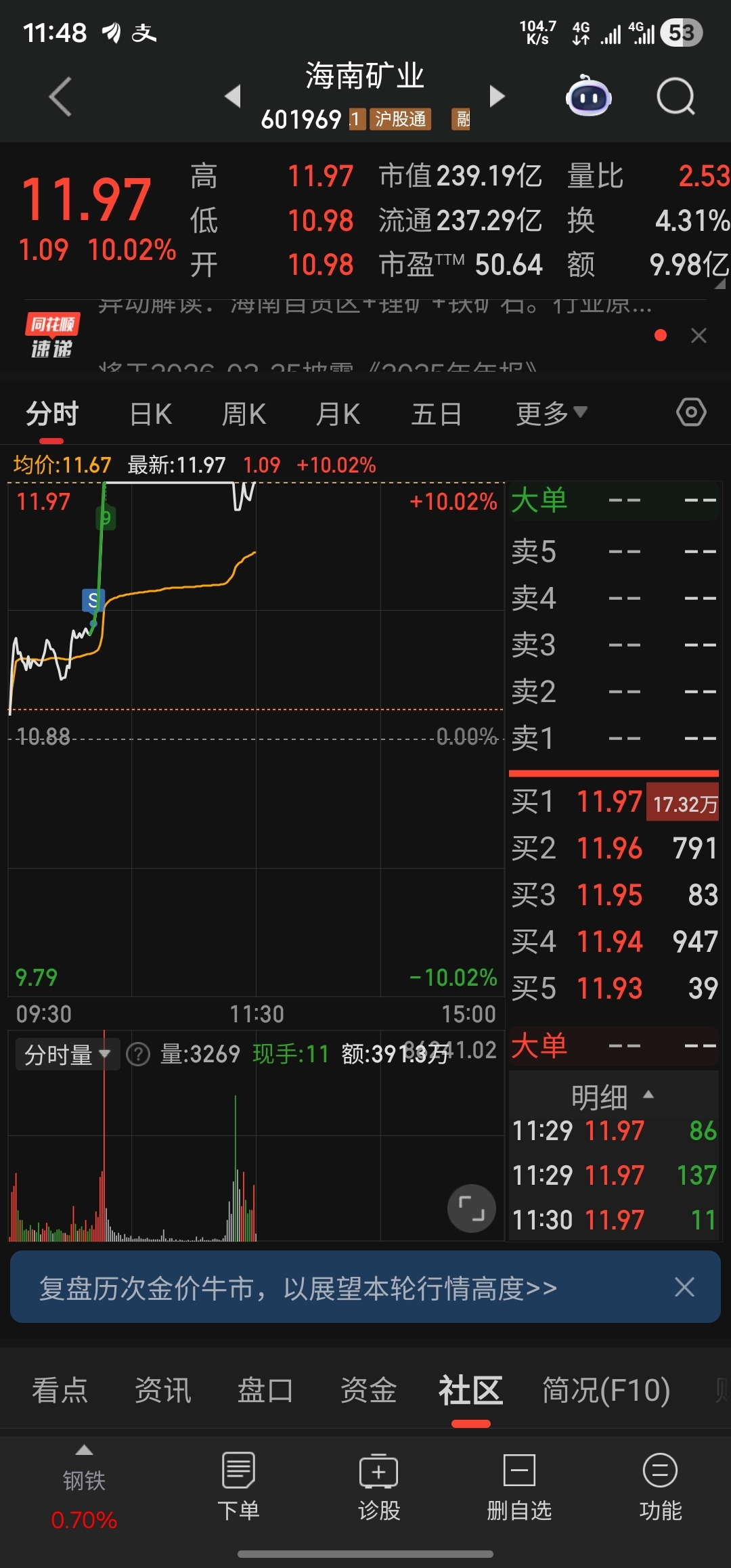 $海南矿业(SH601969)$ 哥让我上来啊