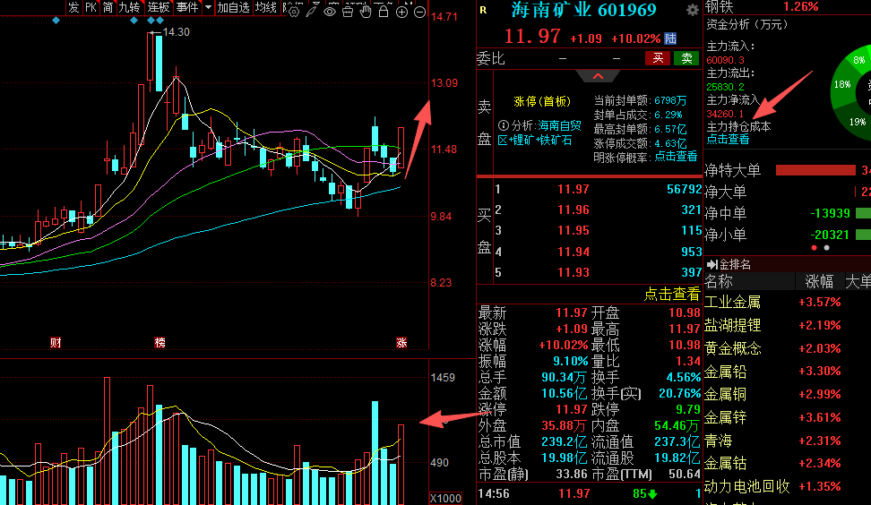 海南矿业近期风头正盛,借着自贸港政策预期和锂矿资源的双重利好,上周五直接涨停突破。从盘面看,紫金的认可度高,股价突破了之前盘整已久的压力区域,形态上打开了新的上行空间。公司海外锂矿资源逐步兑现,海南本地的加工项目也在稳步推进,加上铁矿石和油气业务的稳定贡献,整体基本面支撑较强。技术上股价已经稳稳站在短期均线上方,强势特征明显。锂价的上涨催化仍在,上周五强势反包直接突破压力位了,更验证主力等不及想要拉伸的信号了,现在洗盘已经结束了,要开启强势向上模式了,今天大概率高开了,要是平开附近,都能直接试试,今天大概率一根大阳线了,连板也不是不可能。