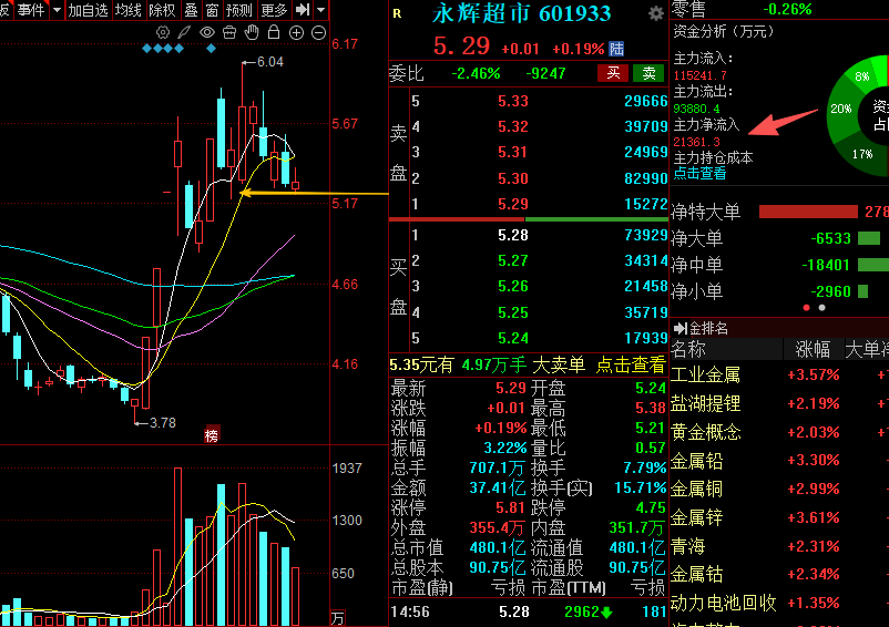周五呈现出止跌企稳的态势,尽管没能顺势转强向上,但全天在均价线附近震荡整理蓄力,主力吸筹蓄力迹象还是比较清晰的,不仅码也得到进一步夯实,还有持续有紫金流入,尤其是尾盘10万手大额抢筹的动作,直接彰显了紫金对其后续走势的信心!今天预期内0轴附近开,继续拿住,大概早盘就会出方向。
