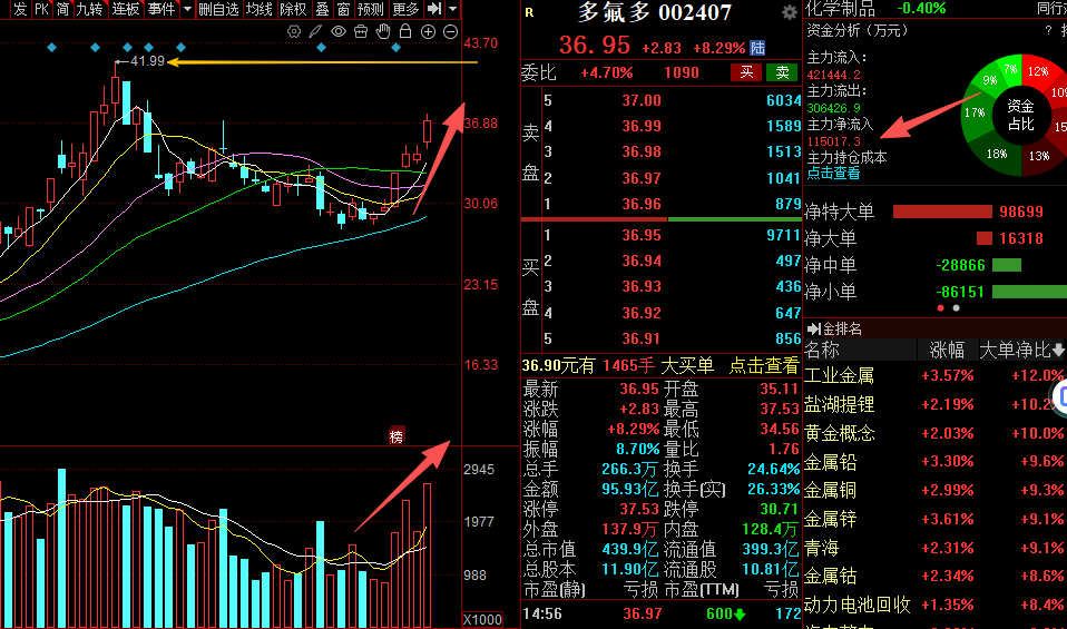 周五直接走出加速行情,盘中触板虽未封住,但完全不用慌,加速上升的趋势仍在,再加上碳酸锂持续涨价的催化,后续完全可以往前高看一看。今天可以同步盯一下天际股份对前高的突破情况,短期波动根本不用放在心上,这波上升趋势拿稳就好,当前来看,后续逐步向前期高点发起冲击的可能性不小。不做模棱两可的分析,只给确定性的判断 —— 多氟多周五的表现,就是最好的证明