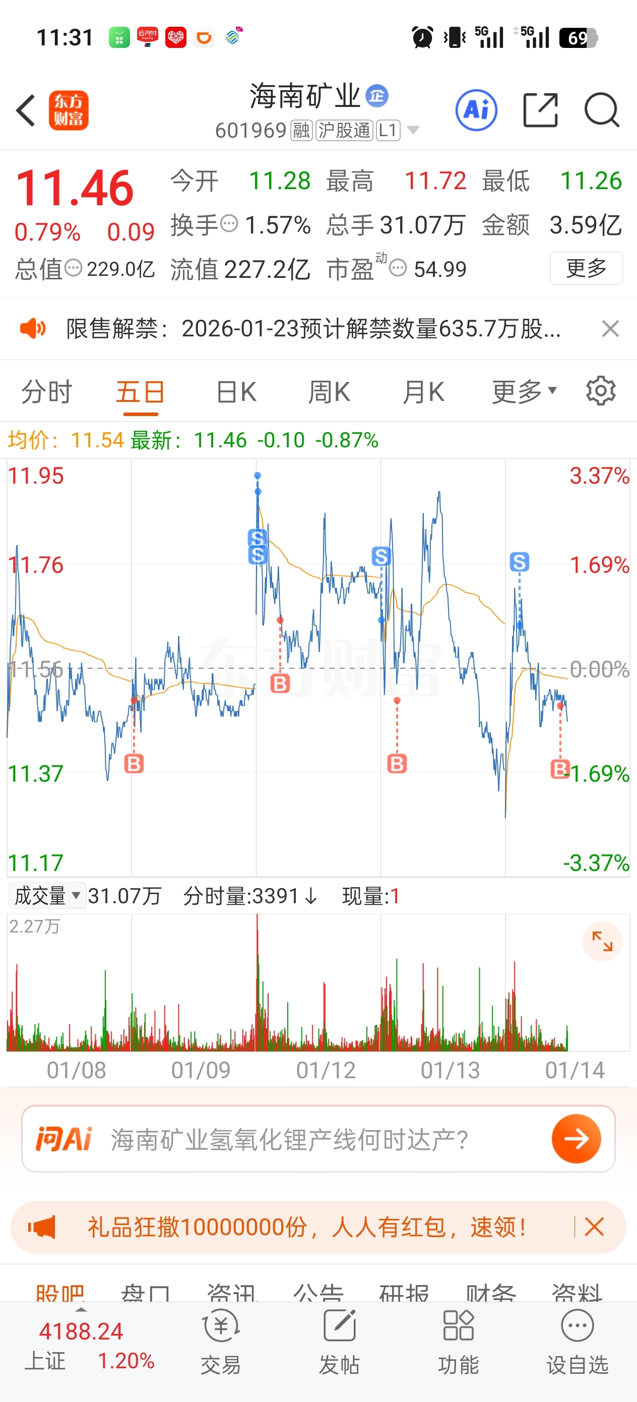 $海南矿业(SH601969)$ 下降通道T也好费劲呀