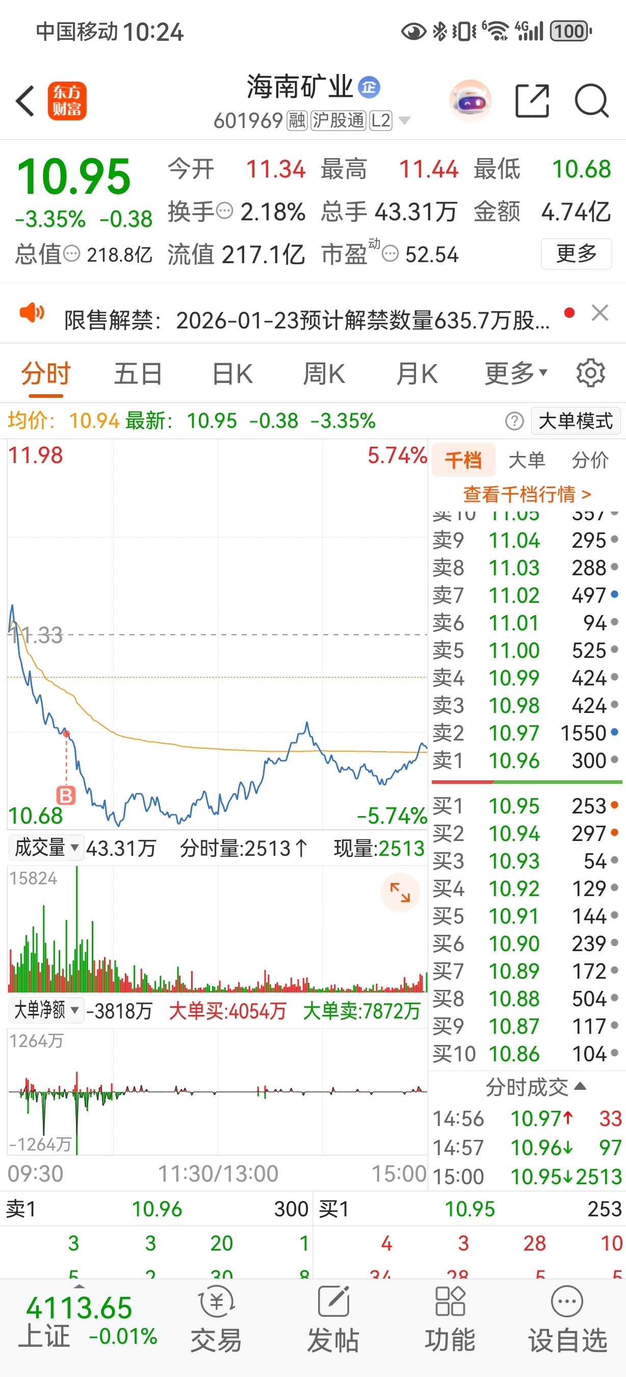$海南矿业(SH601969)$ 都是我的错,今天没兜住!