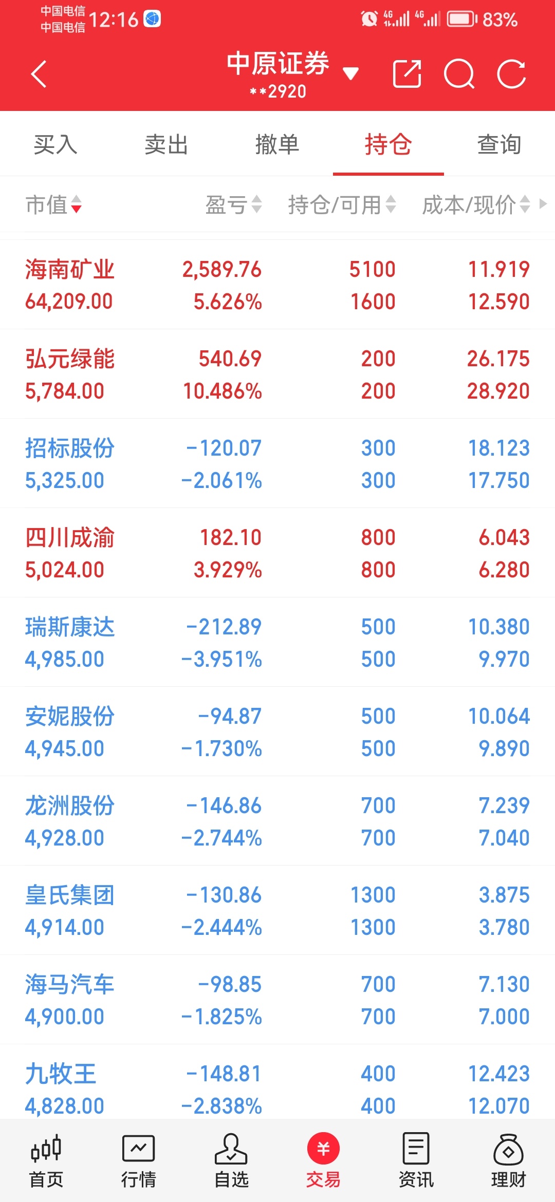 我是用两套打法在测试,5000一只的我一只也不会卖,这次的海南矿业之所以买入金额不同于那12只票是因为这套打法已经测试了2个月了!所以资金也就放大仓位了!