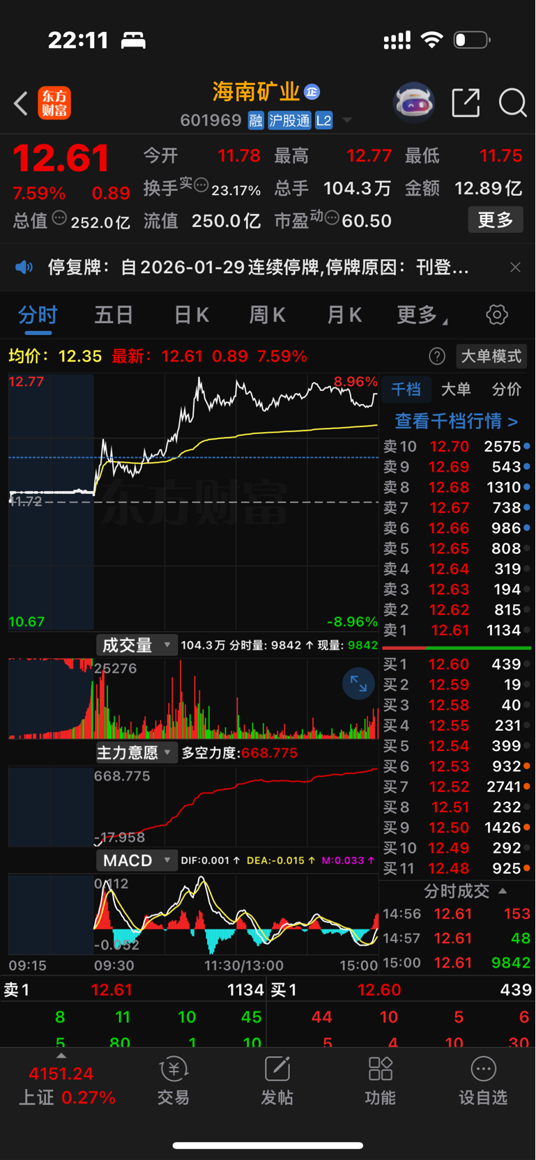$海南矿业(SH601969)$ 买啥啥停牌?
