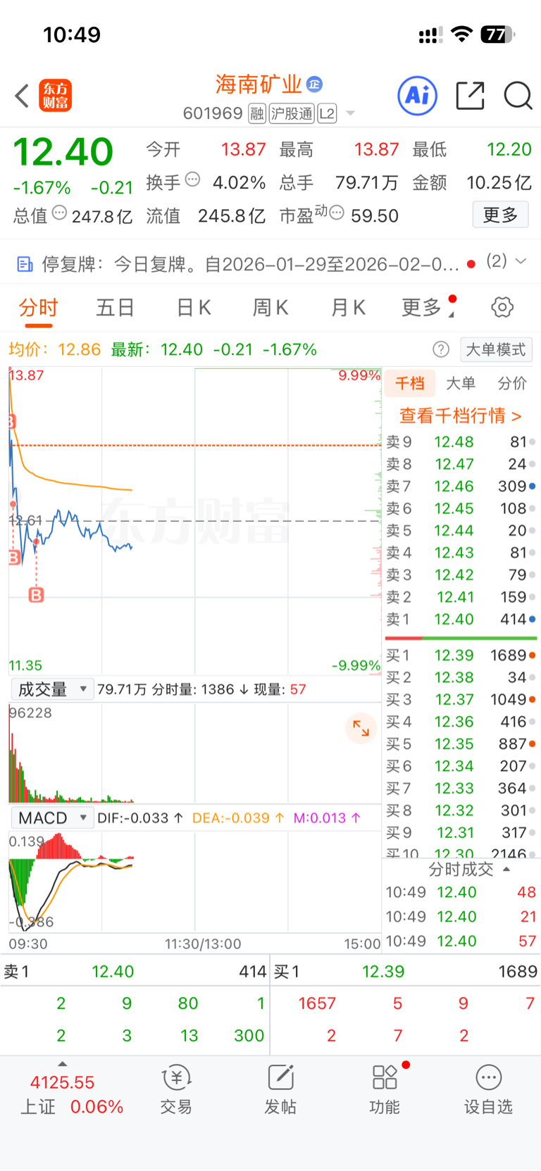 $海南矿业(SH601969)$ 上当了 但愿少亏点