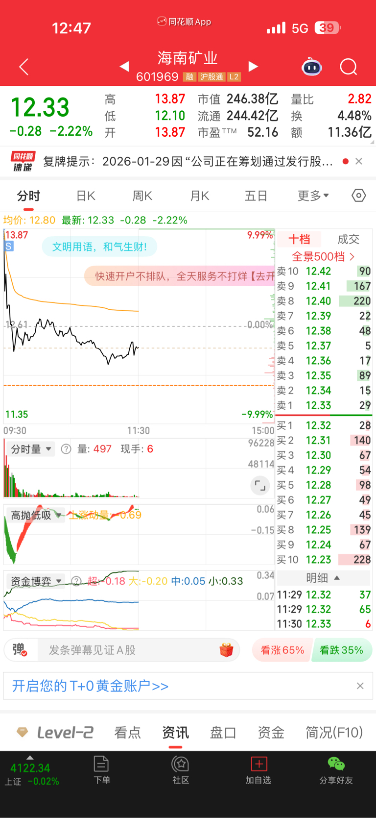 $海南矿业(SH601969)$ 看着竞价封单不对,挂跌停跑了,卖在涨停价