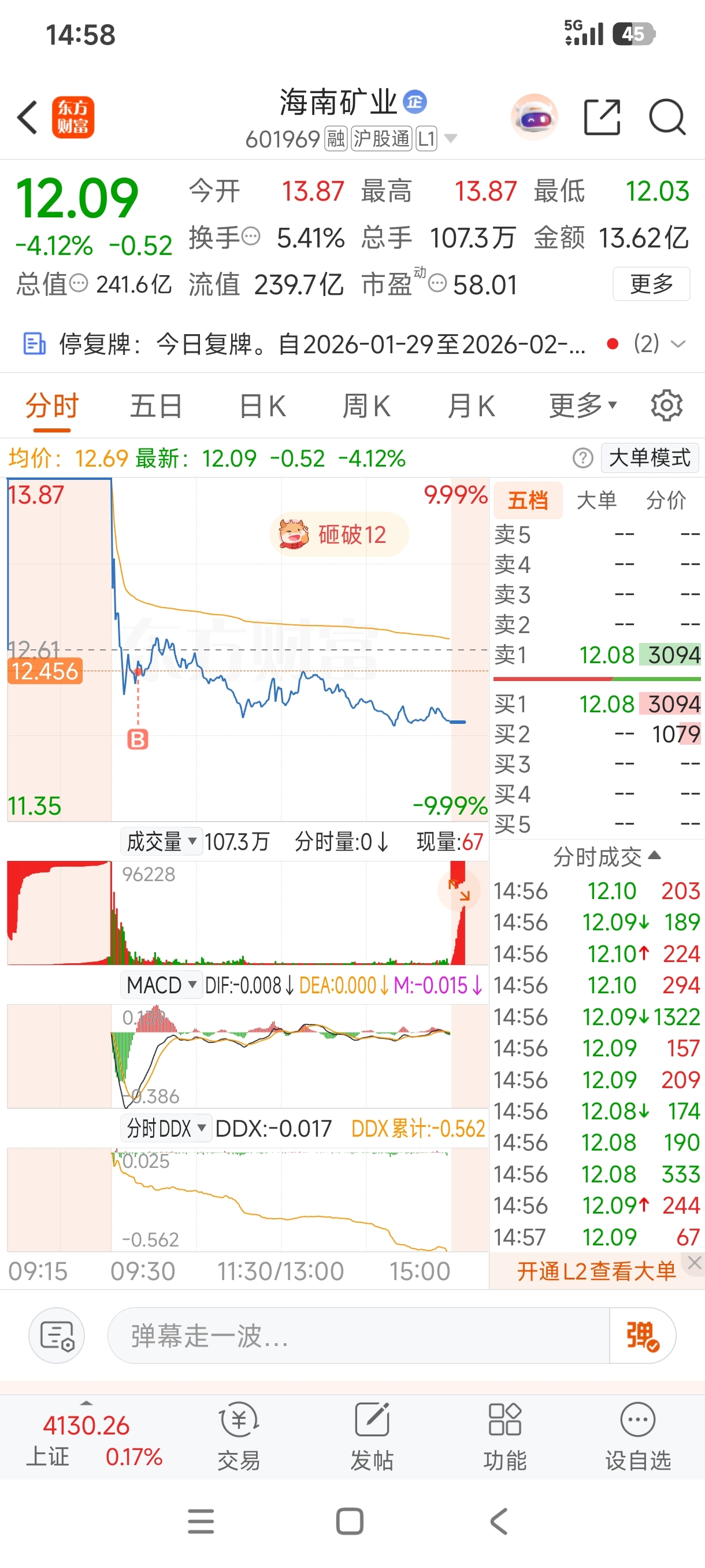 $海南矿业(SH601969)$ 这买的,真能跌,等修复。