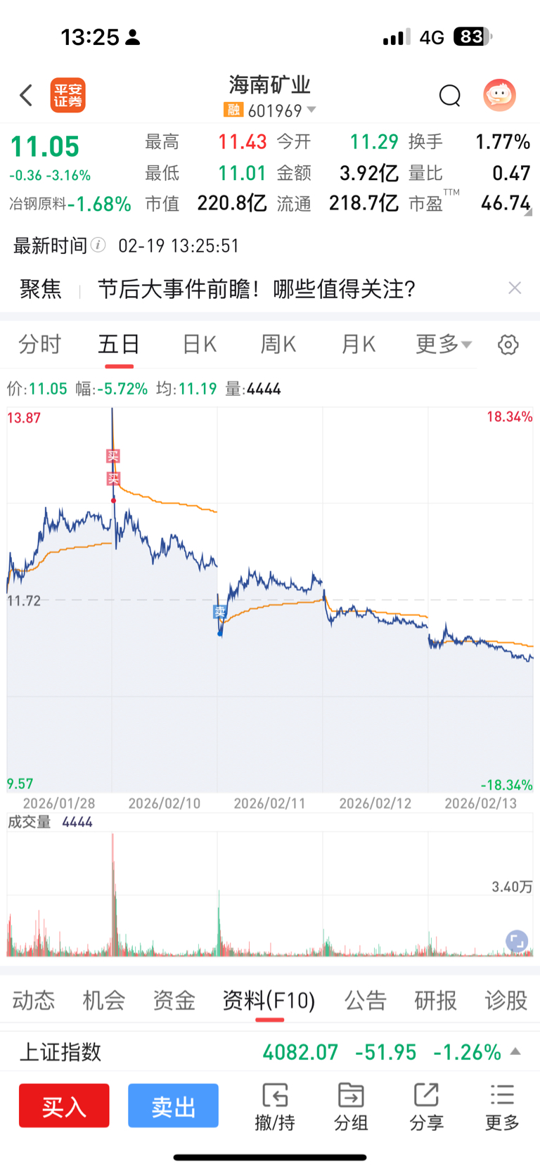 $海南矿业(SH601969)$ 还没有跌到位,到位我肯定要在这个赚回来的