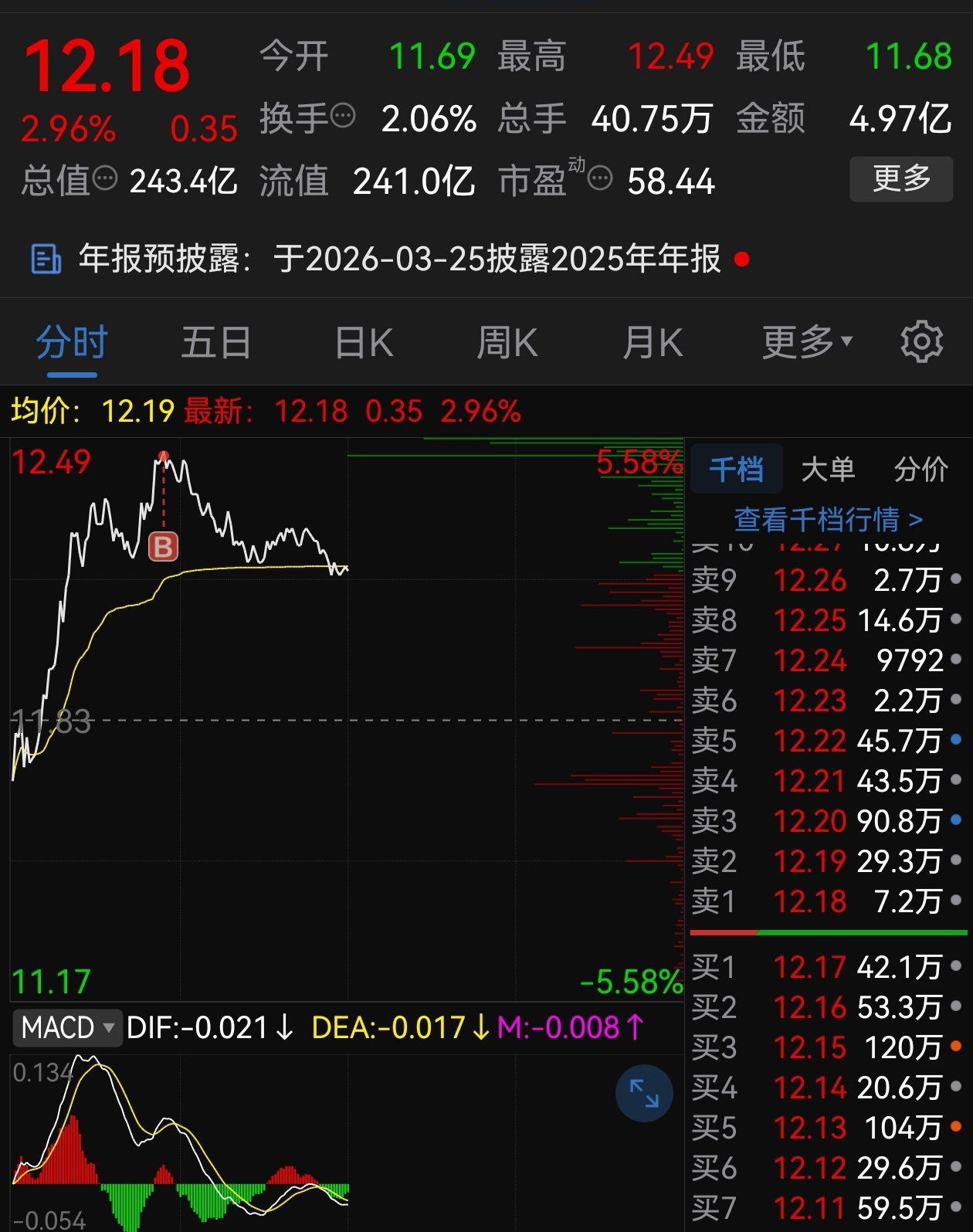 亏十几个点,想补仓……补在最高点。真棒
