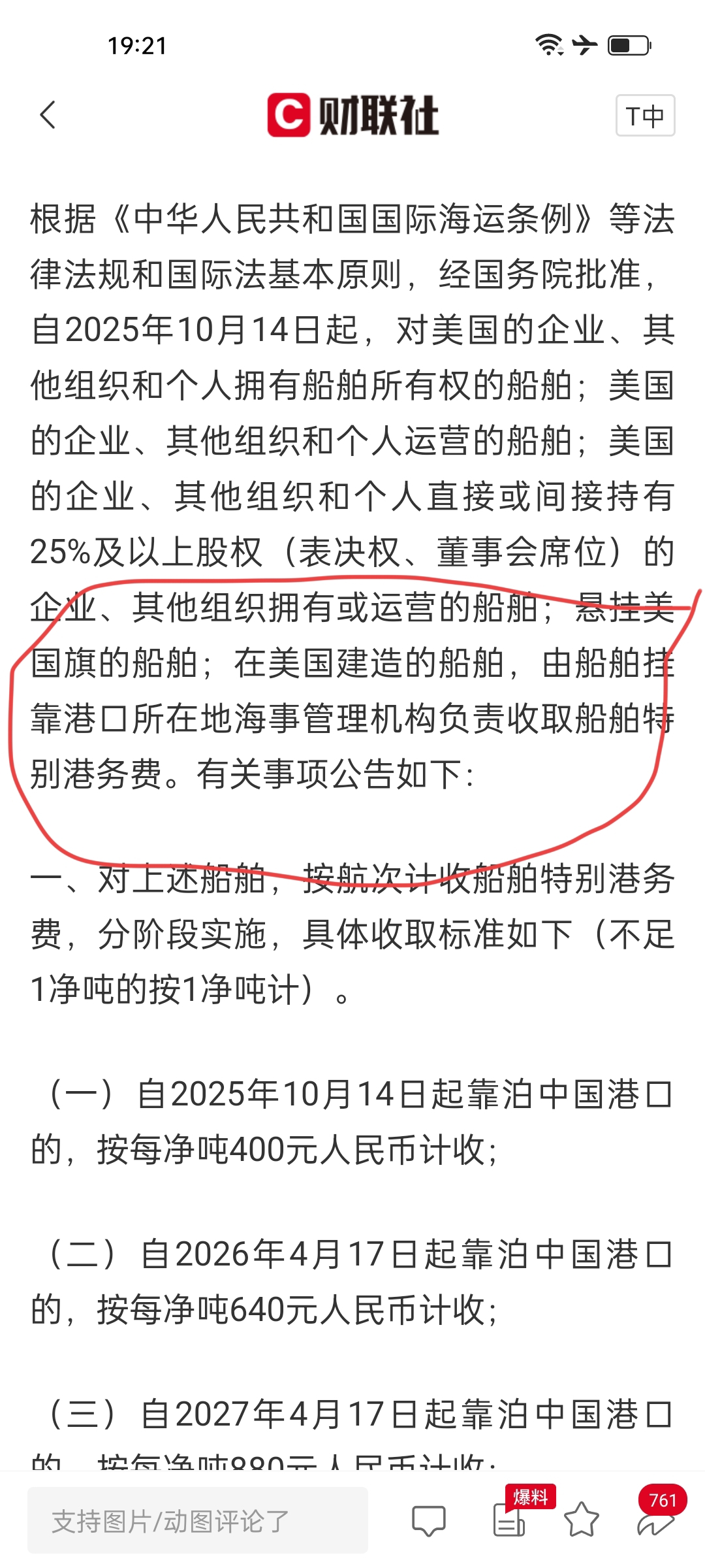 $招商南油(SH601975)$ 对港口是利空,对中国籍航运船舶是利好!