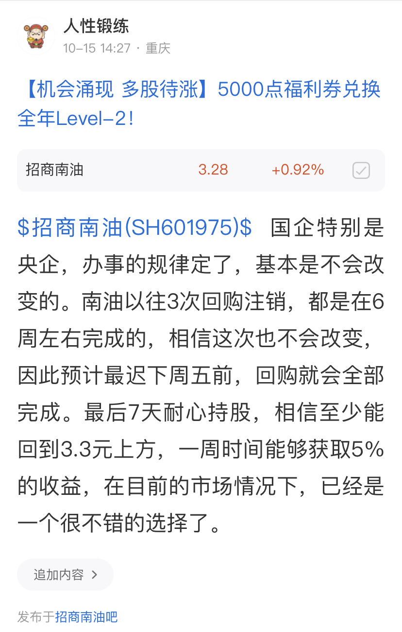 $招商南油(SH601975)$ 15日预测的一周5%收益己到站。