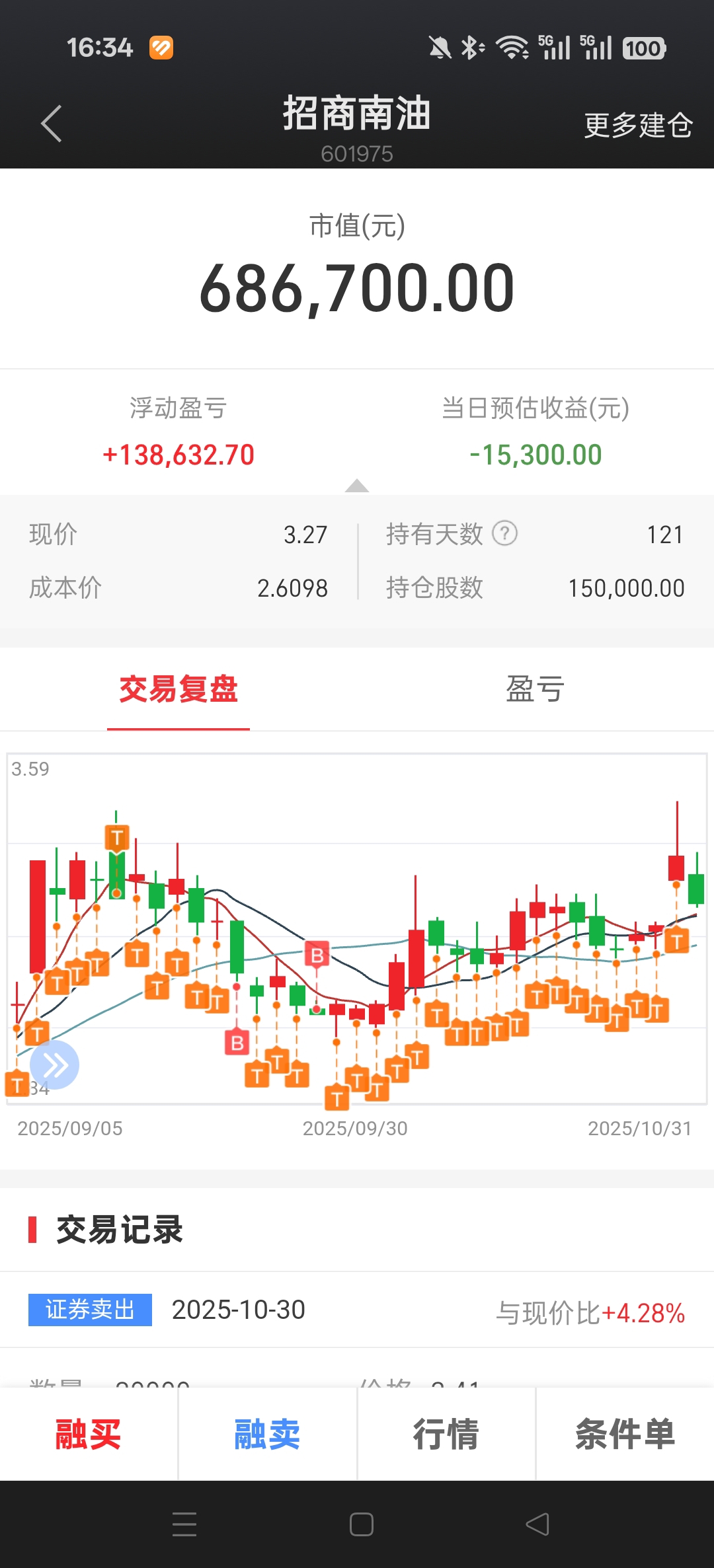 $招商南油(SH601975)$ 昨天减仓700手,今天买着买着就加回了600手