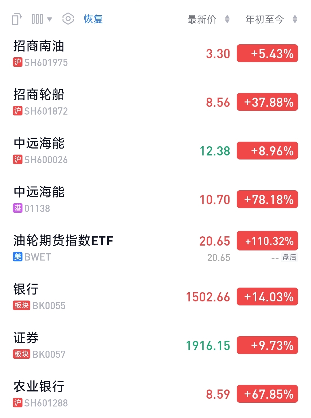 $招商南油(SH601975)$ 今年才涨了5个点儿,远远跑输大盘