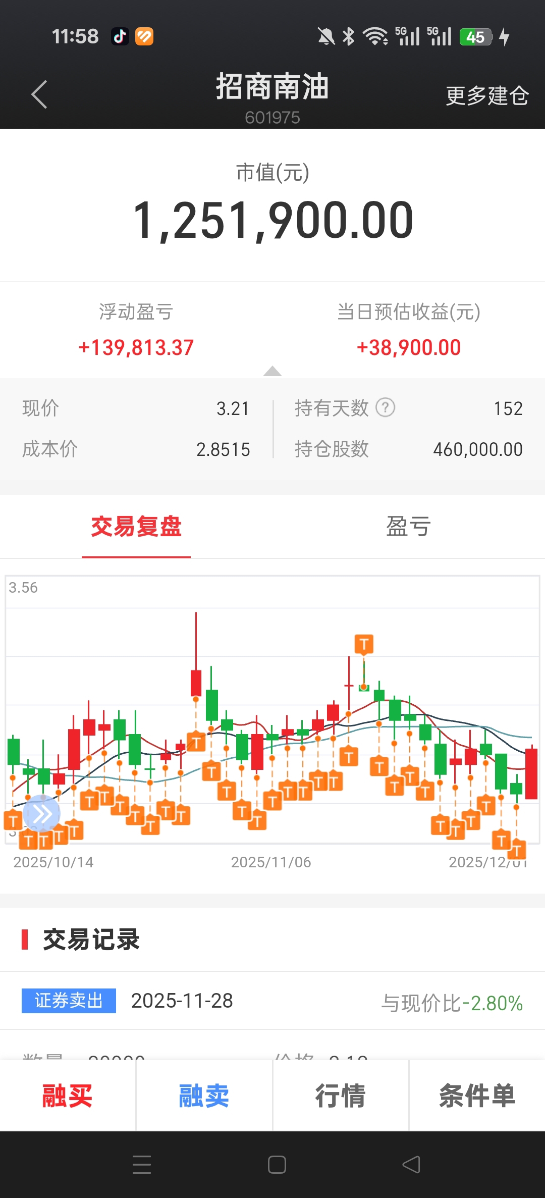 $招商南油(SH601975)$ 虽然总涨不过轮船,但终于反弹了,t卖出一部分控制一下仓位