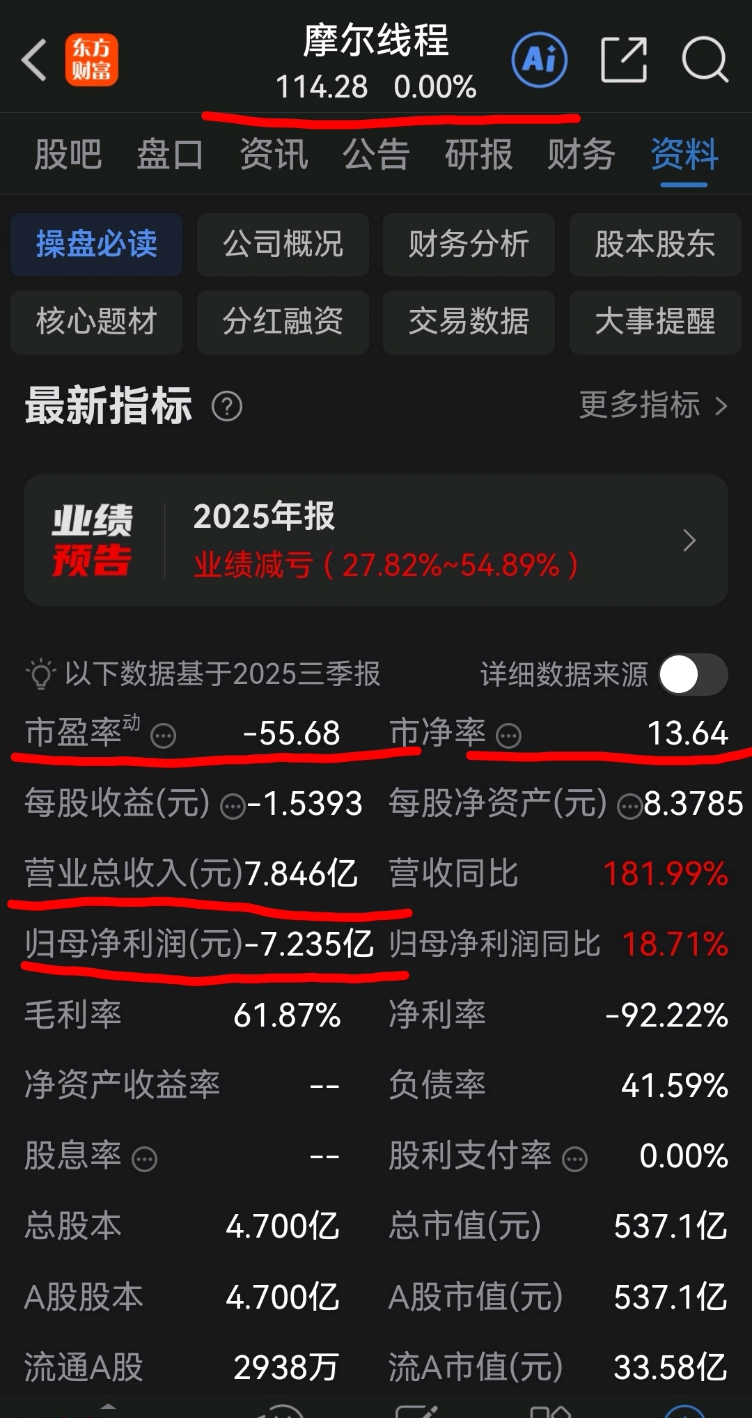 摩尔线程:亏损7.235亿元,发行价都是114.28元了!招商南油:净利润9.4
