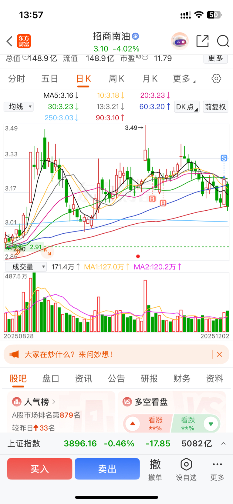 $招商南油(SH601975)$ 不亏钱 嘿嘿