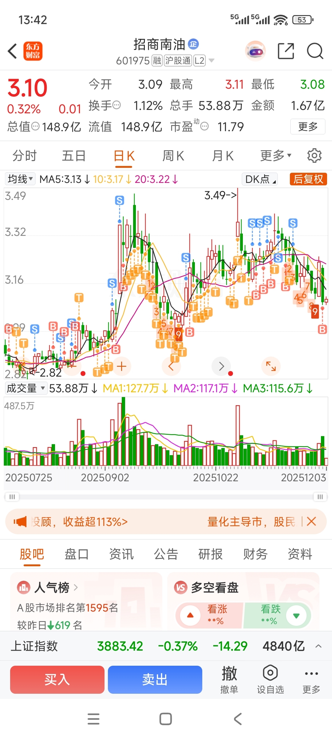 $招商南油(SH601975)$ 坐过上车的舒服不,我又回来T了