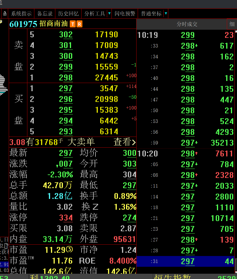 招商南油再次出现向下大单抛盘