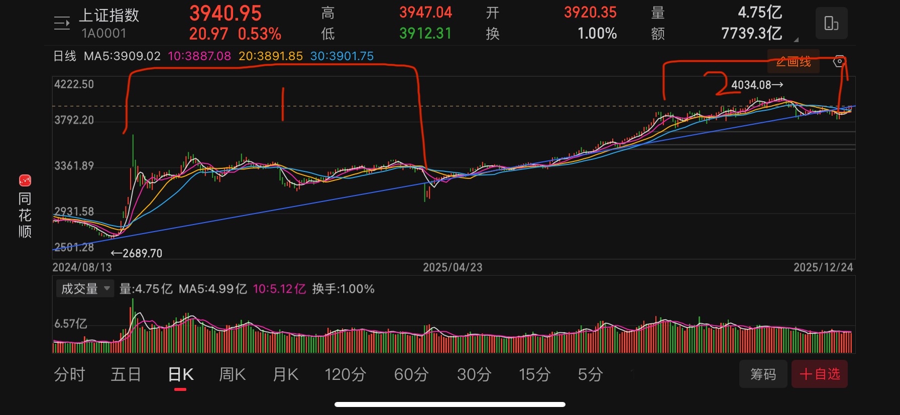 大盘日k。以前发过。这条线没变过。重新站上位置。2号就是1号的缩小版