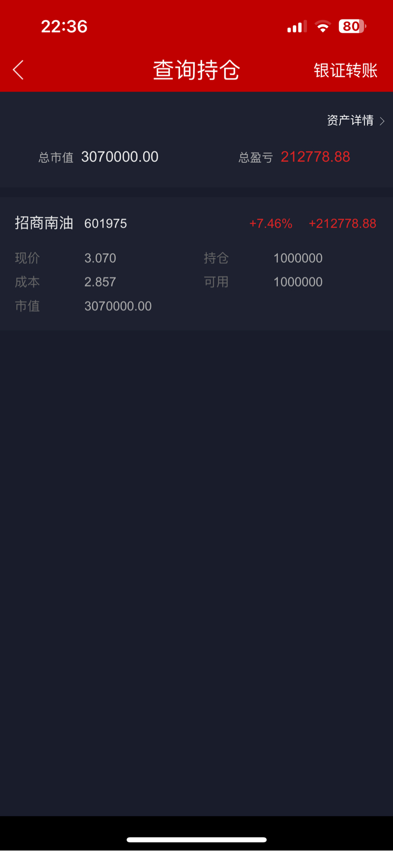 $招商南油(SH601975)$ 万手弟在这,和我一起躲牛市吧,无惧世事变改,还是越难越爱