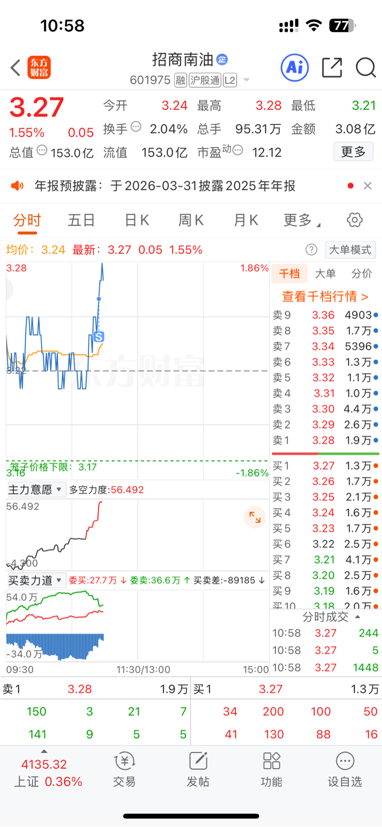 $招商南油(SH601975)$ 320的10手也给我吃了,哈哈,看来真要翻倍了