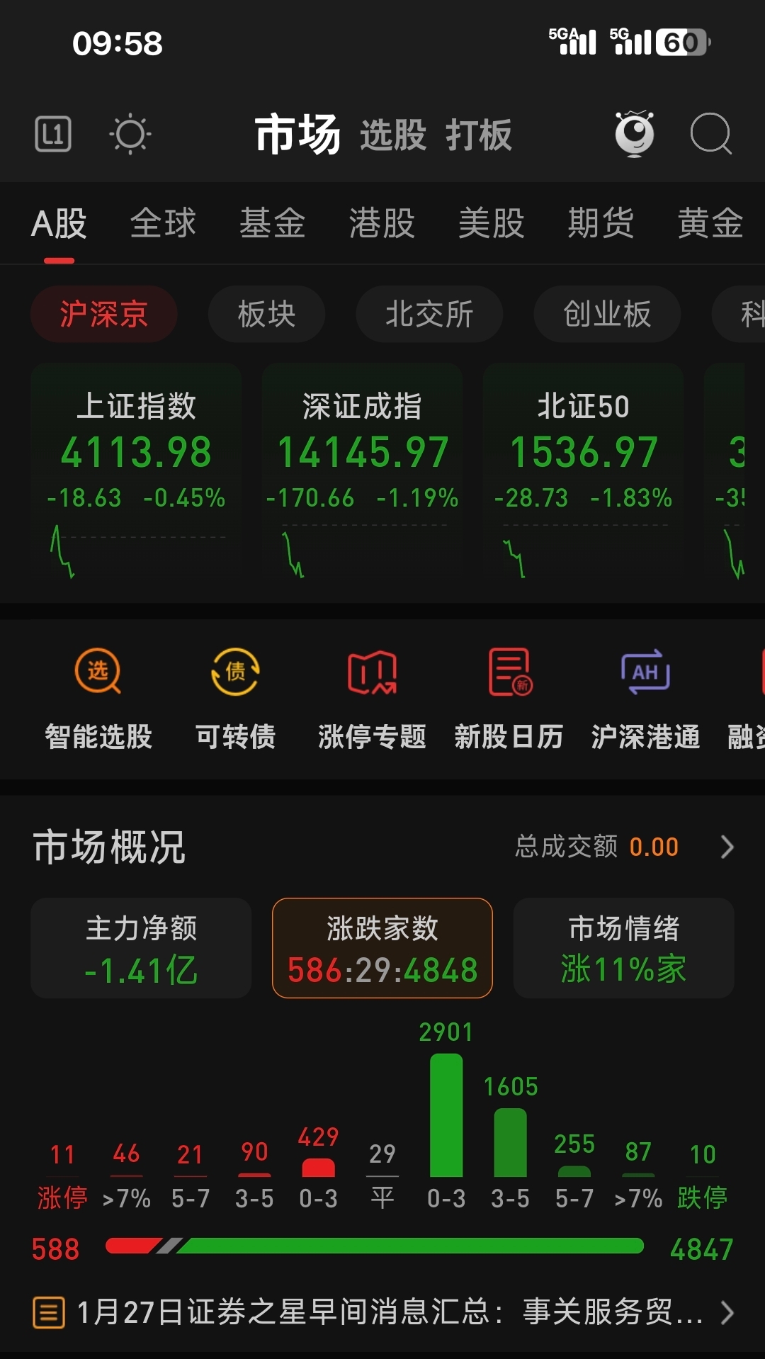 4800家下跌,真的太恐怖了,还好翻红就跑了