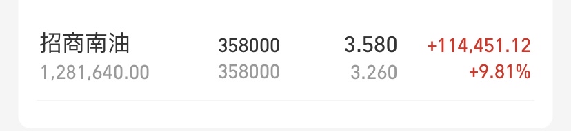 $招商南油(SH601975)$ 收盘价和我的持仓数很相似,有趣
